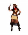 Vuoi essere un perfetto personaggio del Far West per una festa a tema o Carnvale?Il Costume Sceriffa del West si compone di un tubino a quadrettini gialli e bianchi e di un lungo gilet, più stretto sotto il decoltè, beige con frange marroni sia sulle spalle che nella bordatura in basso (come da foto).Davvero tantissimi i dettagli: polsiere in coordinato al gilet, arricchito dalle fondine per la pistola e il distintivo, e il tradizionale cappello con fascia dorata.Pronte a vivere un'avventura?